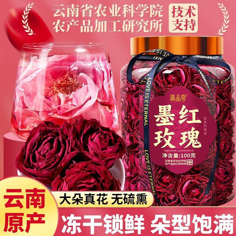 农科院云南冻干墨红玫瑰花食用玫瑰花茶重瓣无硫熏大朵头茬玫瑰花