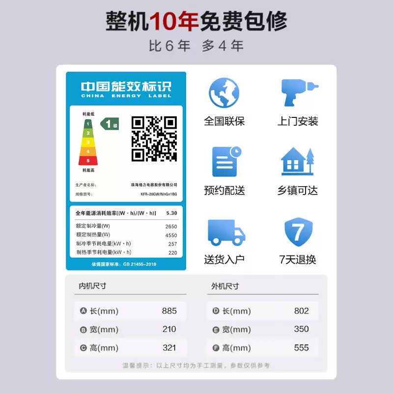 一级能效变频节能送货入户十年包修