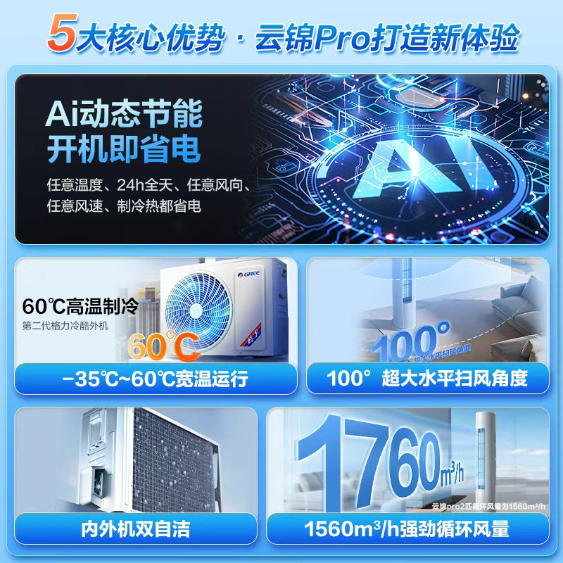 格力空调云锦Pro3匹柜机变频家用新一级能效