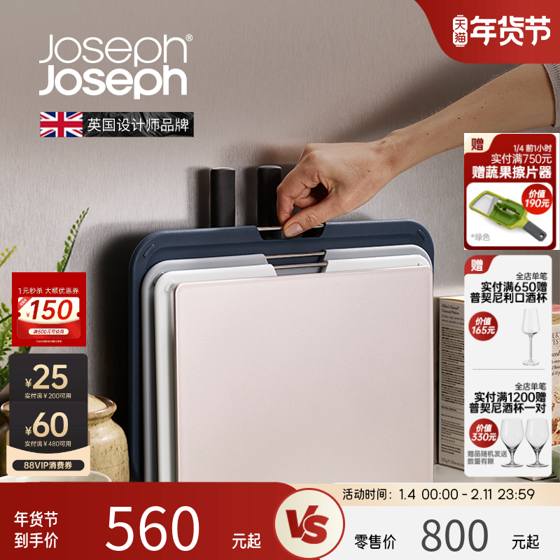 JosephJoseph厨房菜板套装分类砧板抗菌带刀送礼乔迁礼 60194