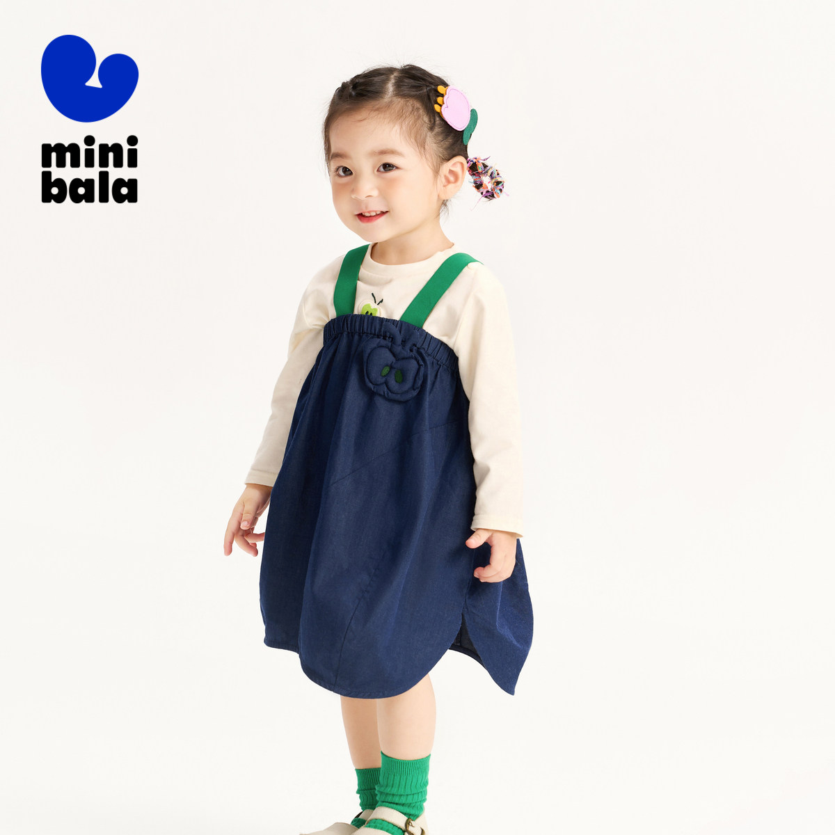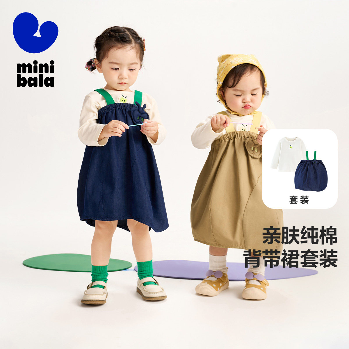 迷你巴拉巴拉女童长袖套装亲肤纯棉时尚T恤背带裙子