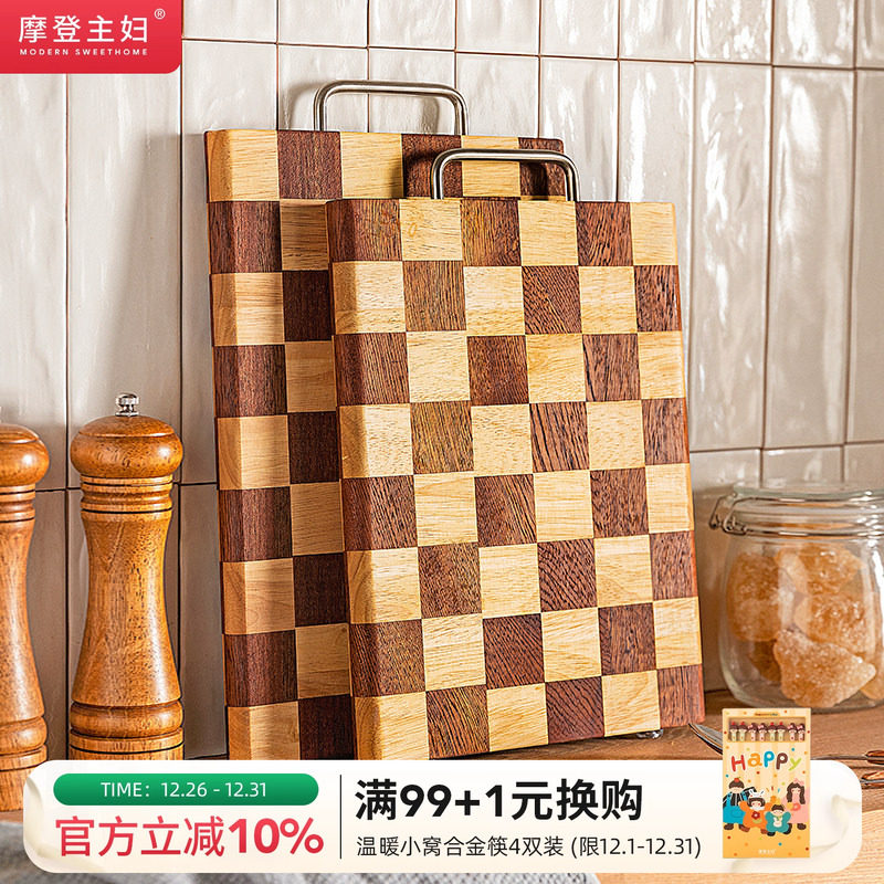 摩登主妇棋盘格菜板乌檀木抗菌防霉实木切菜案板厨房家用水果砧板