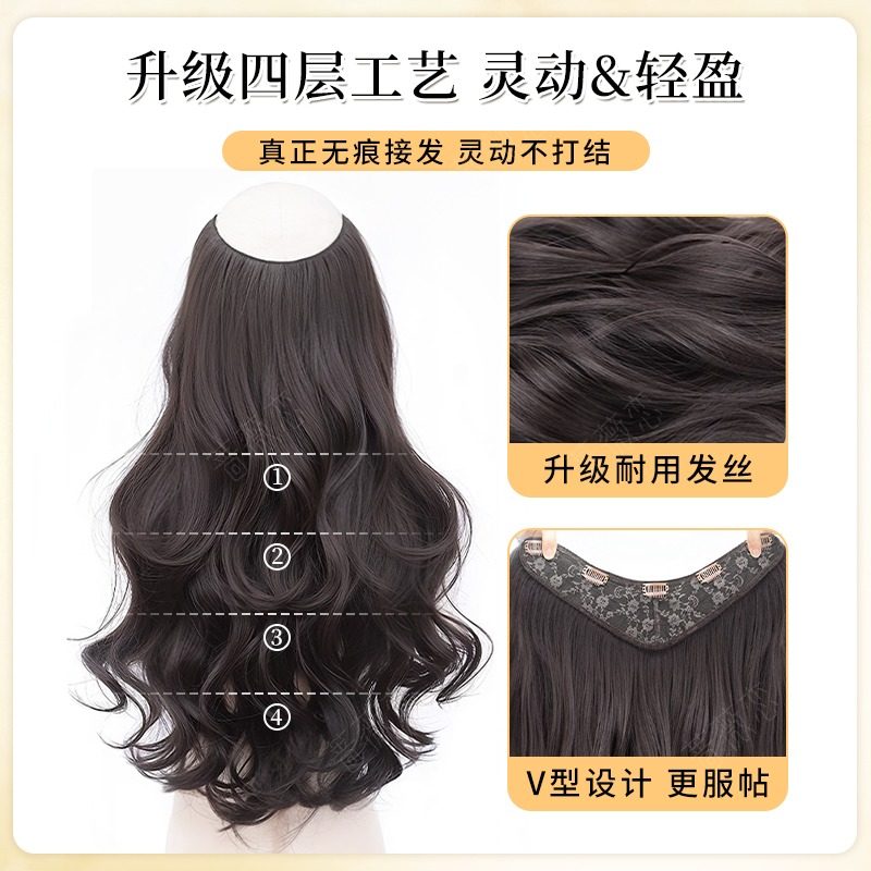 挂耳染发片卷发挑染假发片女一片式隐形彩色接发贴片蓬松漂染长发