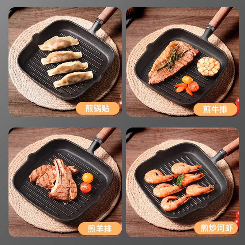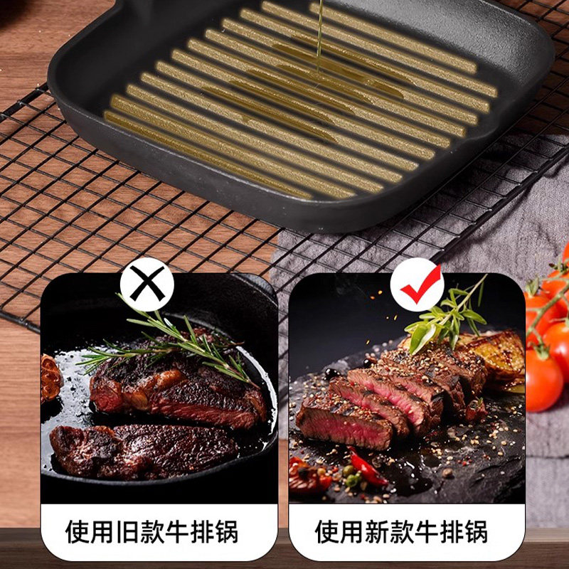 铸铁平底锅无涂层牛排小煎锅不粘锅煎牛排专用锅家用电磁炉早餐锅