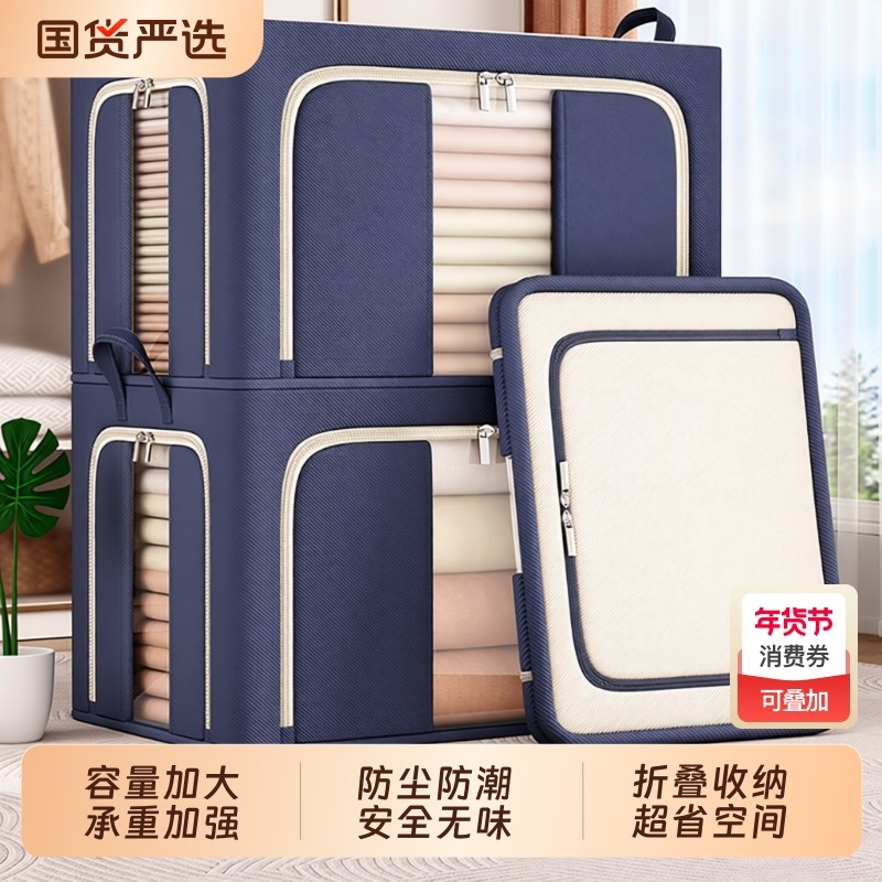 佳帮手衣服收纳箱家用装衣物被子百纳箱布艺可视窗衣柜专用整理箱