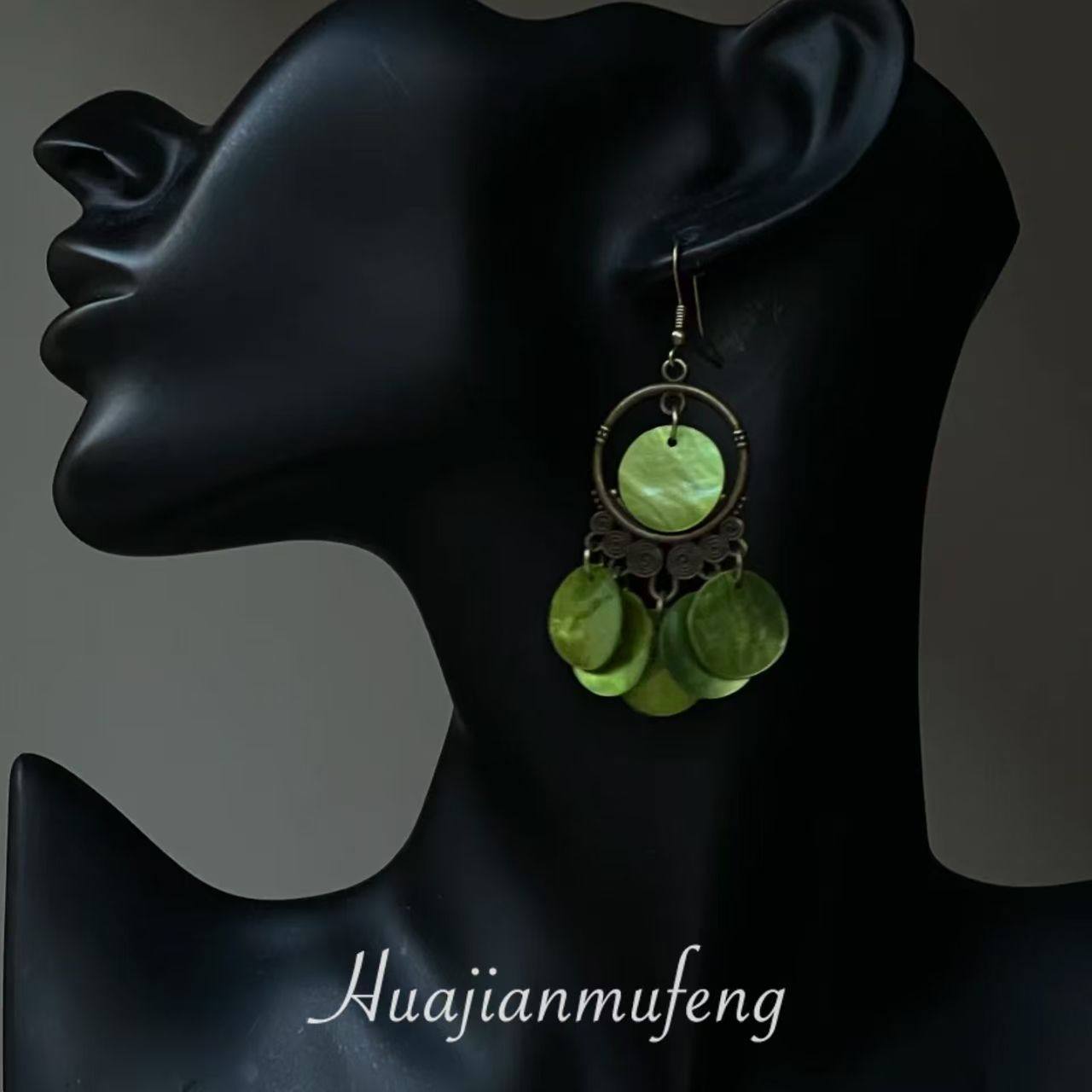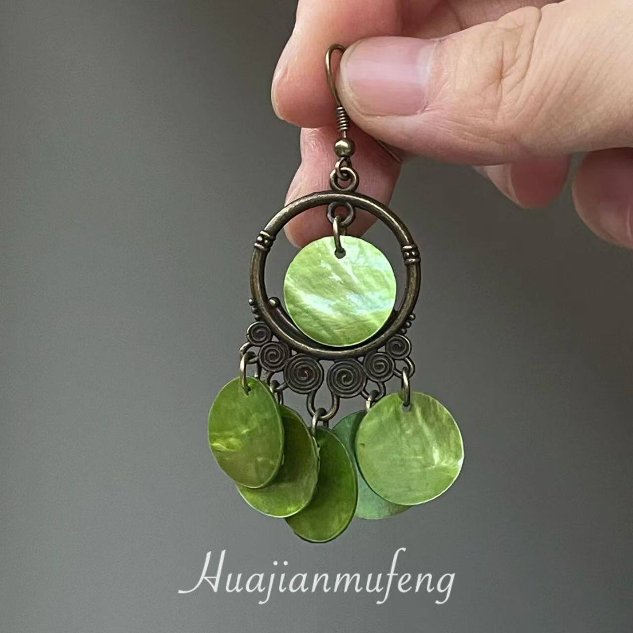 【碧海】复古风绿色圆片流苏耳环女2025新款民族风轻奢感气质耳饰