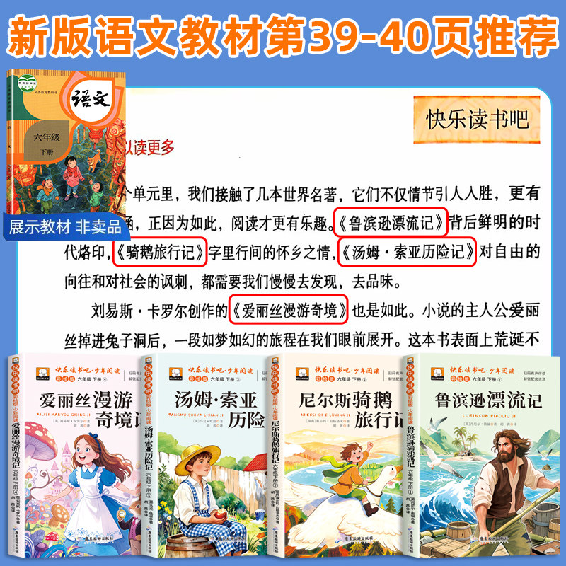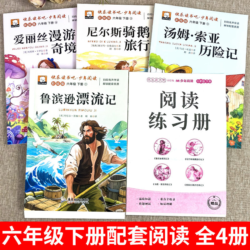 全套4册鲁滨逊漂流记六年级下册必读的课外书正版原著完整版6下快乐读书吧汤姆索亚历险记尼尔斯骑鹅旅行记爱丽丝漫游奇境书籍宾孙