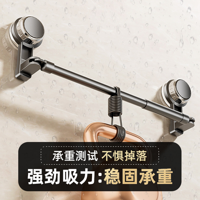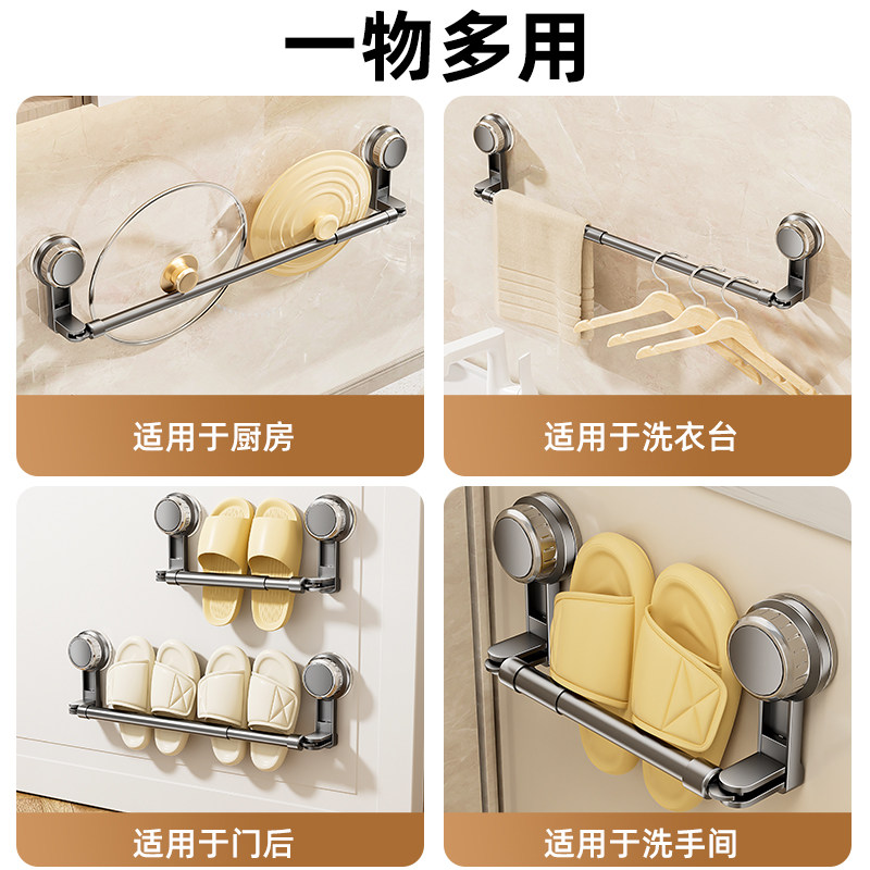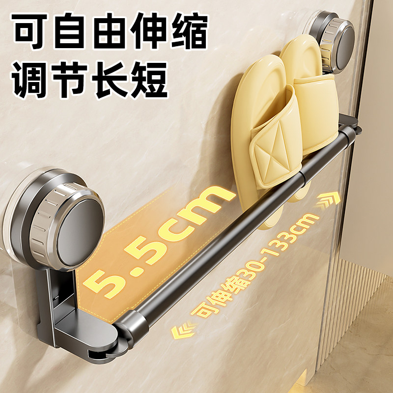 吸盘毛巾架卫生间免打孔浴室伸缩毛巾杆置物架洗手间浴巾收纳挂架