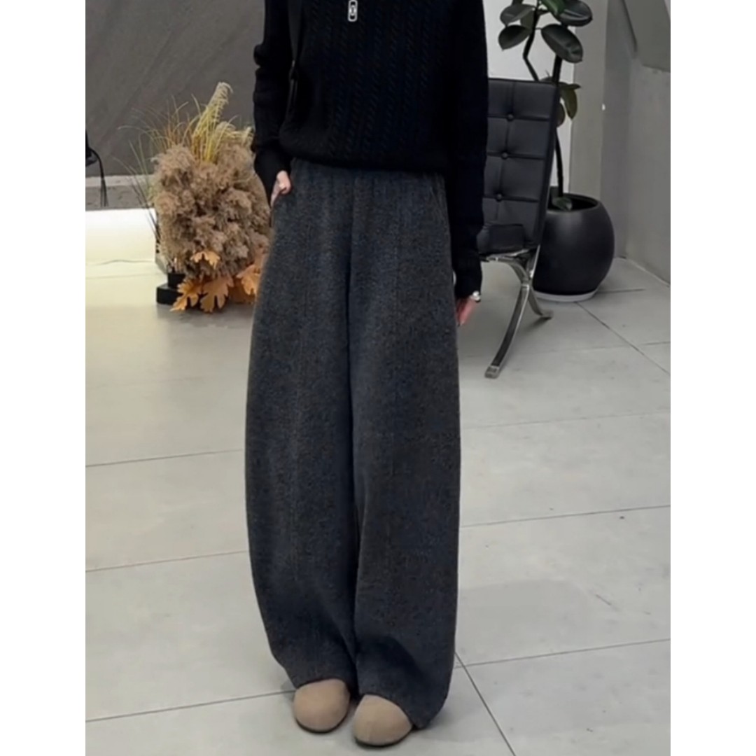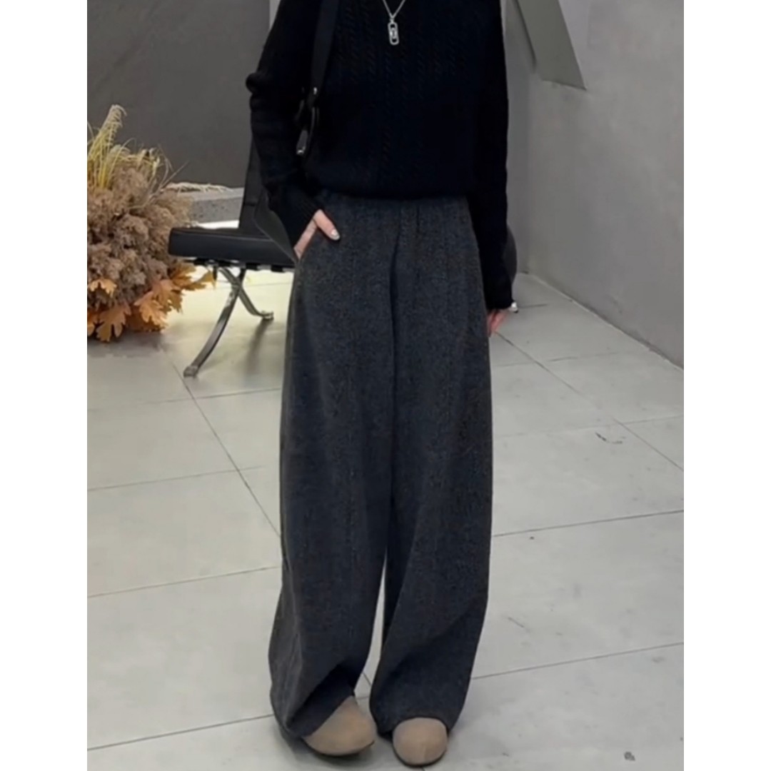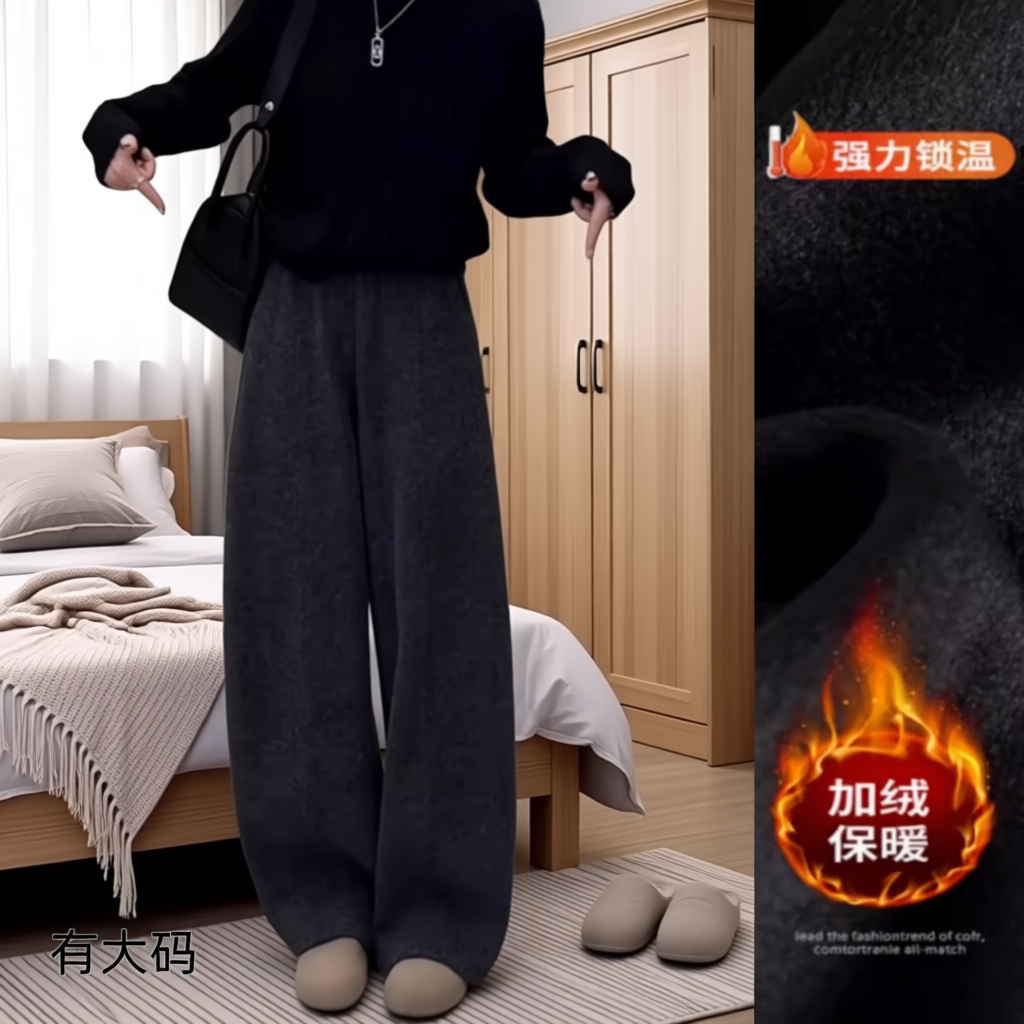 韩系慵懒风时尚休闲裤女2025年秋冬新款加绒高腰显瘦阔腿裤大码