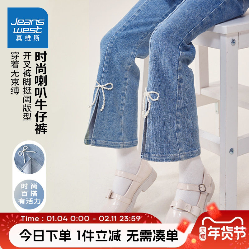 真维斯童装女童牛仔裤春秋款女孩运动裤子儿童2025新款喇叭裤秋装