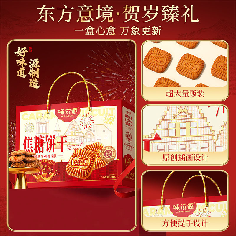 焦糖饼干礼盒比利时风味咖啡休闲小零食年货节送礼新年桃酥沙琪玛