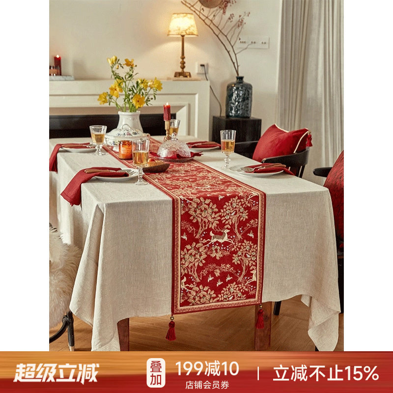 【孤品4折】蜡笔派层林驯鹿桌旗喜庆新婚礼物氛围红色节日盖布