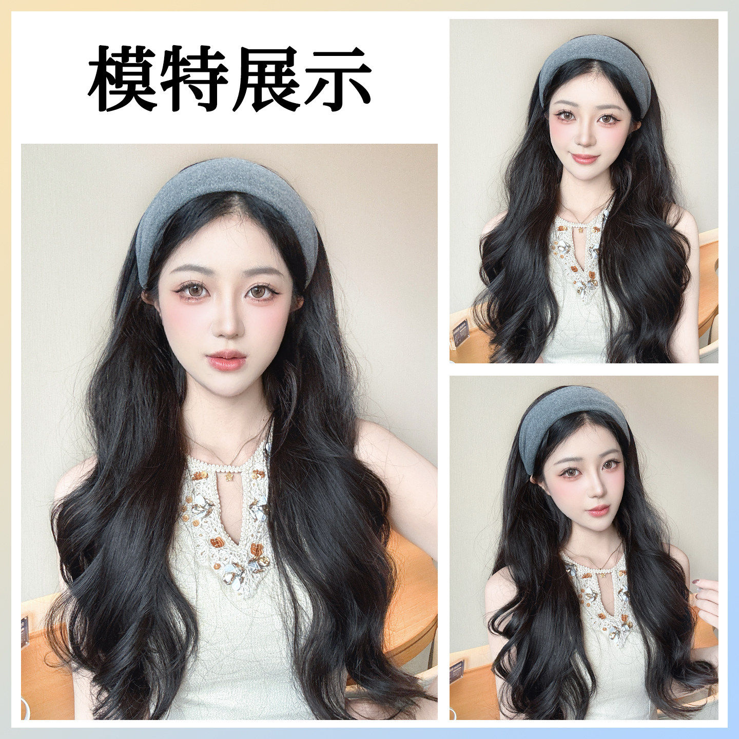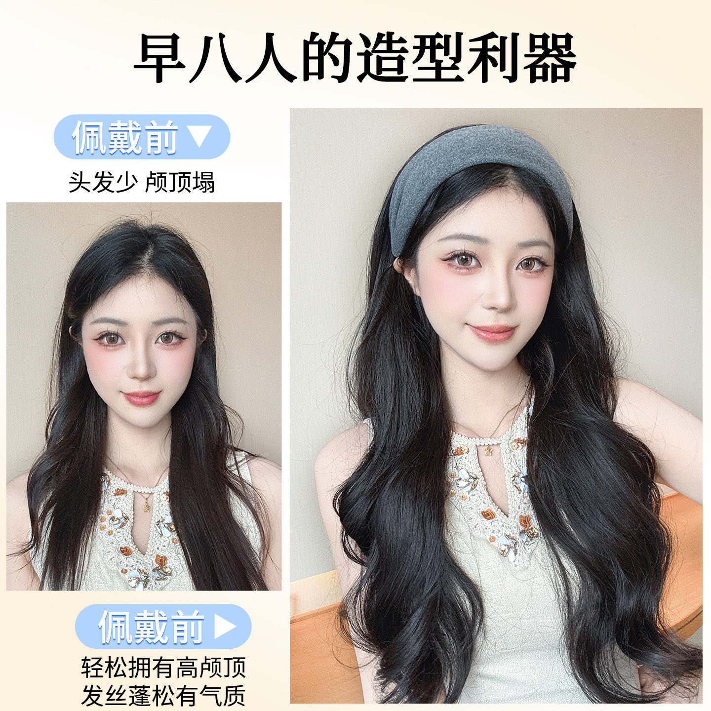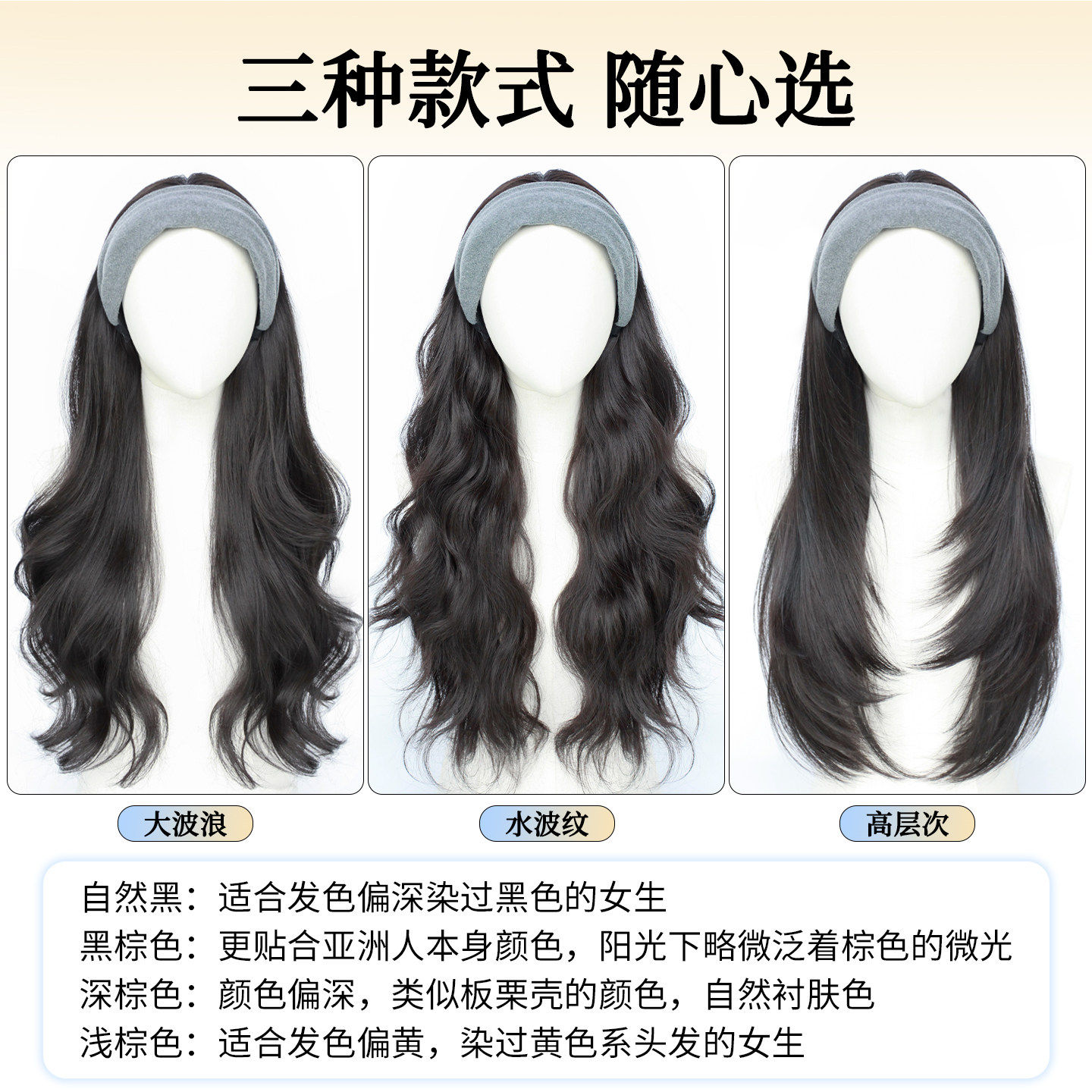 发箍假发一体式2025新款大波浪长发全头套女长卷发自然日常半头套