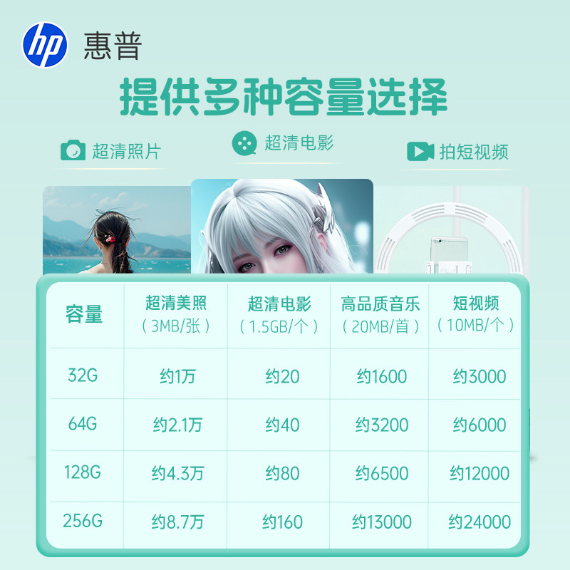 惠普正品口红创意U盘128g学生大容量可爱女生手机电脑两用优盘