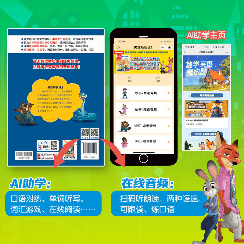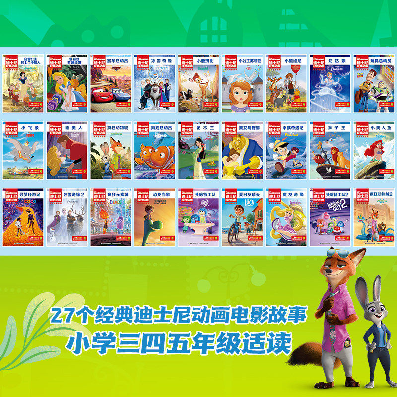 迪士尼经典动画英文电影故事书疯狂动物城2儿童英语启蒙分级阅读绘本阅读书冰雪奇缘2赛车玩具总动员小鹿斑比头脑特工队双语狮子王