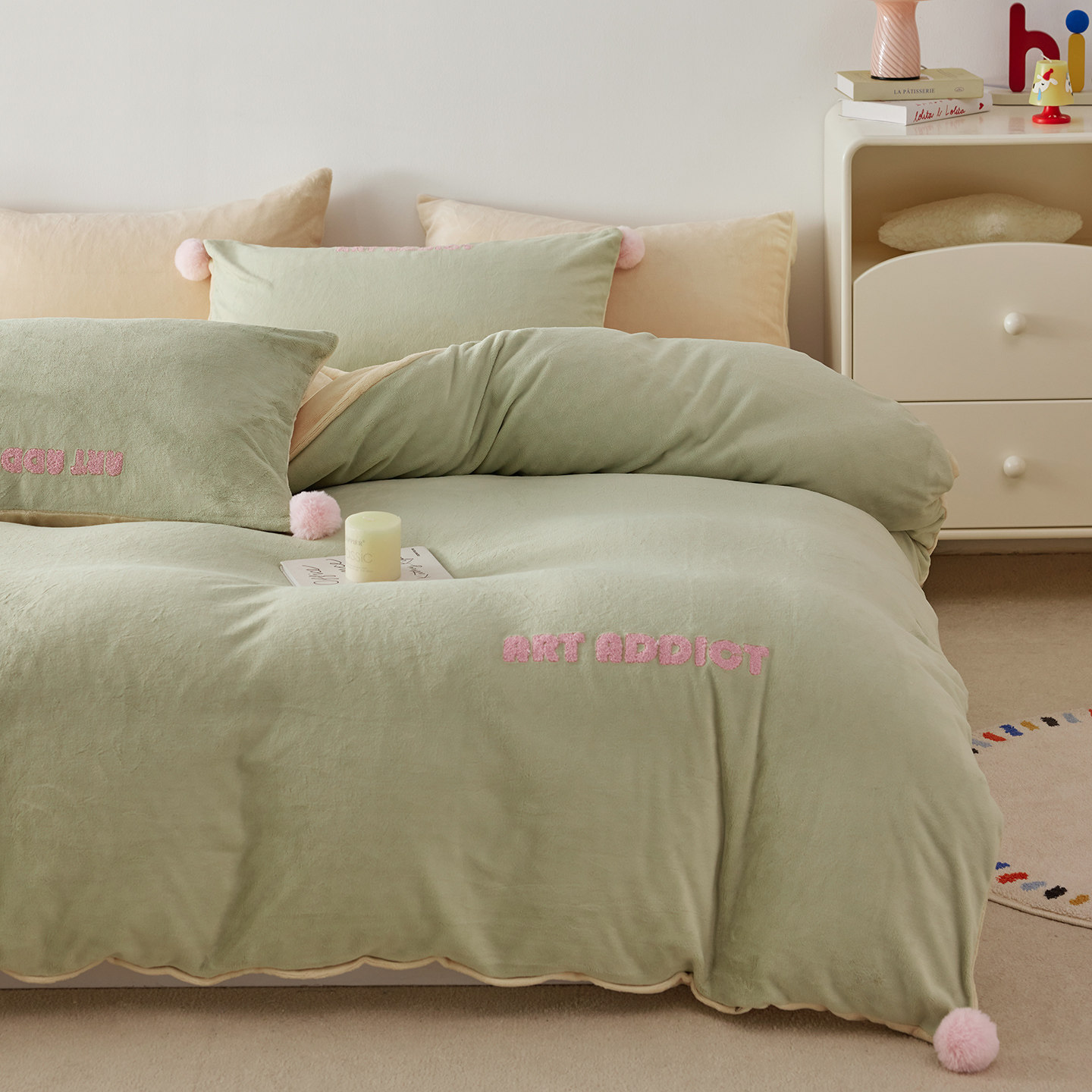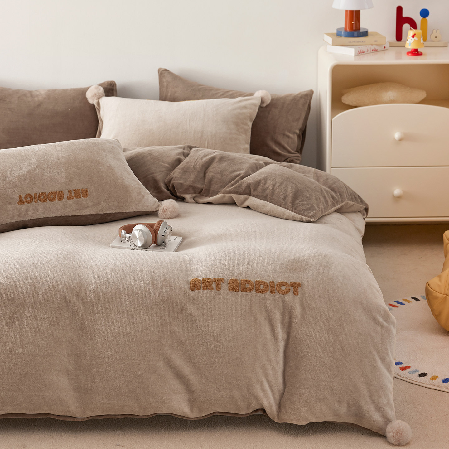 无印良品纯色秋冬牛奶绒四件套珊瑚绒床上绒三件套冬季加绒法兰绒