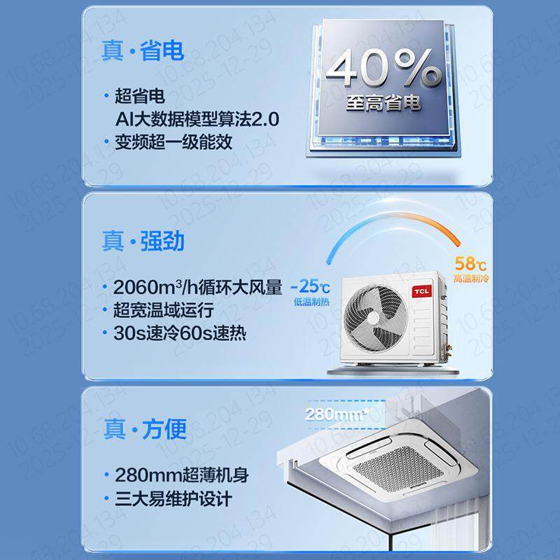 TCL中央空调 天花机5匹一级小蓝翼Ai省电变频冷暖空调嵌入式空调