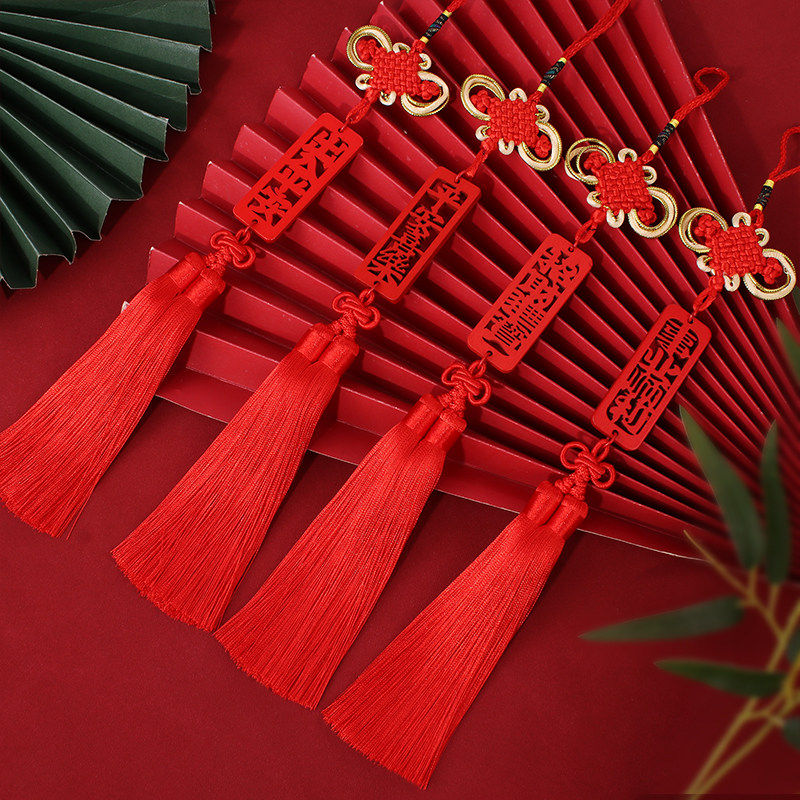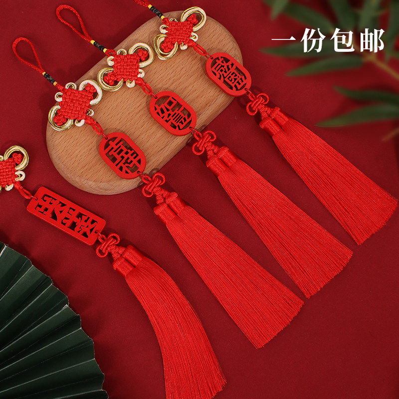 中国结双流苏木质福字灯笼diy材料车挂装饰吊坠配件穗子手工扇形