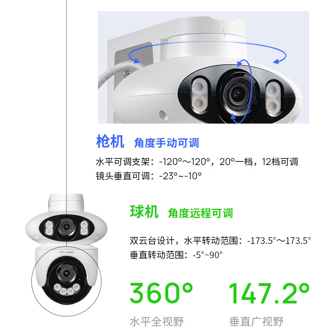 普联TP-LINK摄影头室外高清全彩无线监控摄像头双频WIFI手机远程监控器双路家用球机网络摄像机TL-IPC6129F-A