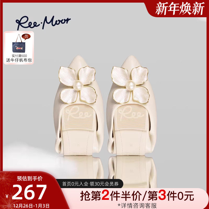 REEMOOR尖头单鞋法式舒适百搭低跟平底软皮浅口小香风睿慕女鞋子