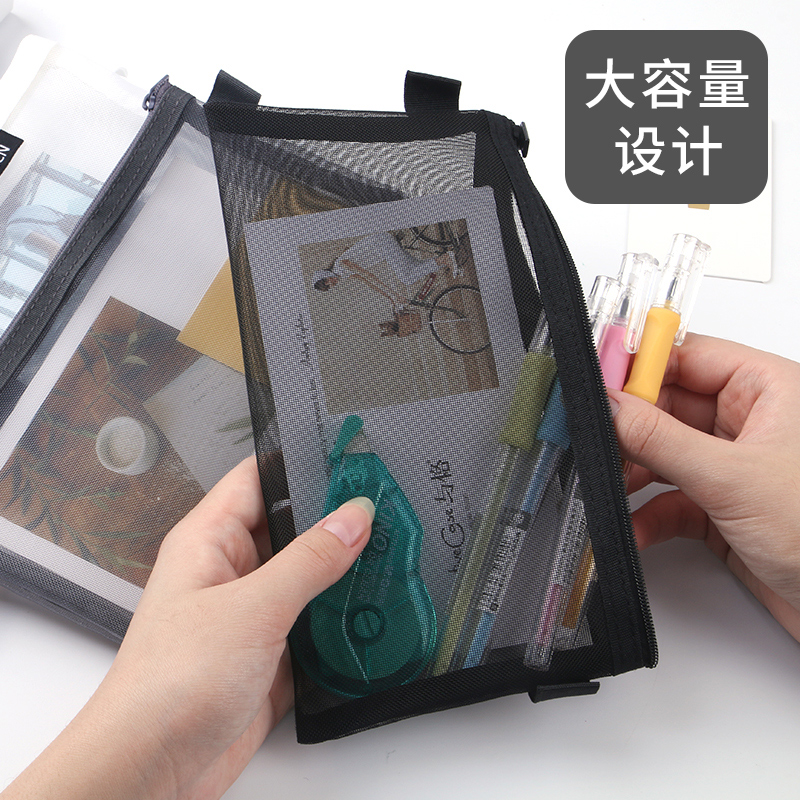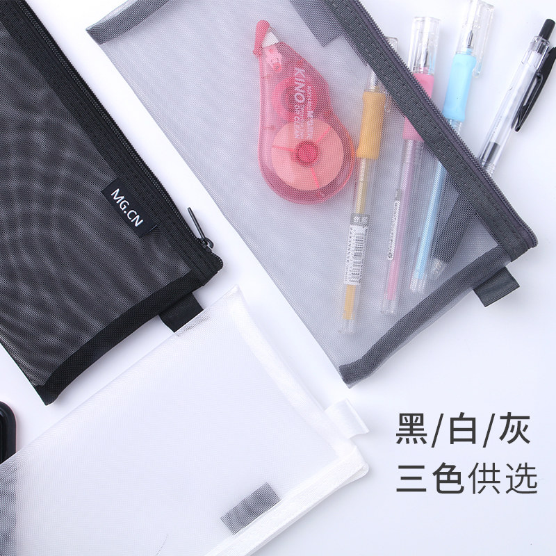 晨光铅笔笔袋尼龙高颜值ins简约文具盒儿童透明网纱文具袋男女孩学生初中生女生高中生考试专用创意笔袋笔盒