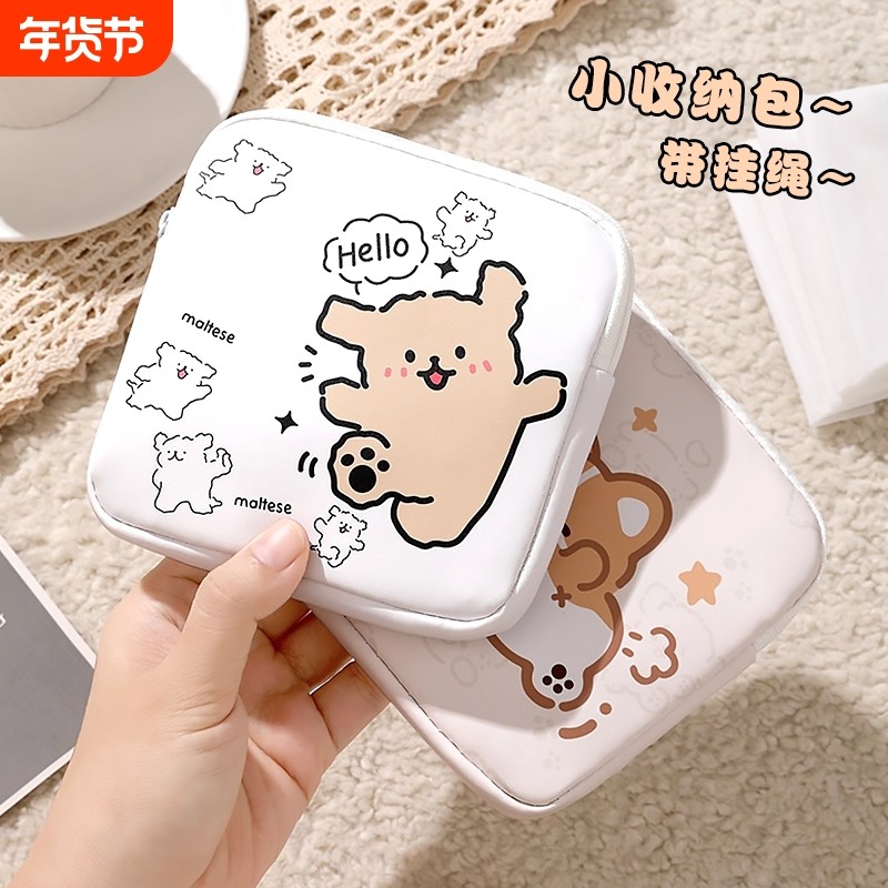 日系可爱零钱包简约华夫格收纳包女便携手腕包花朵mini小巧手提包