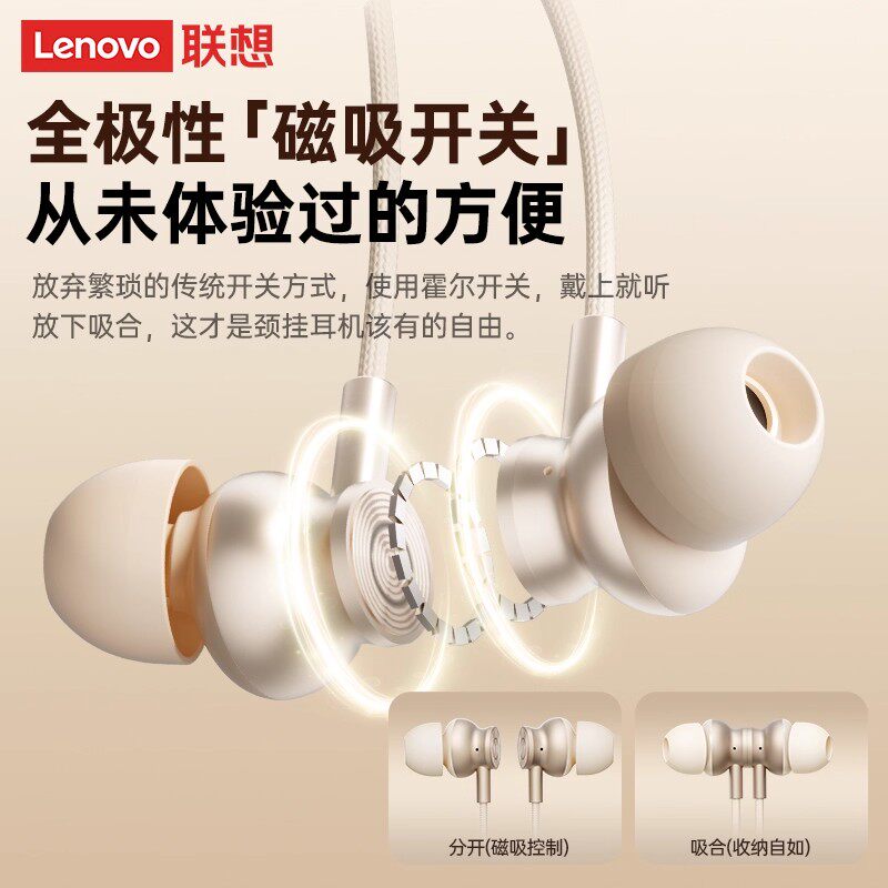 联想颈挂脖式蓝牙耳机无线2026新款入耳式运动骑行高音质超长续航