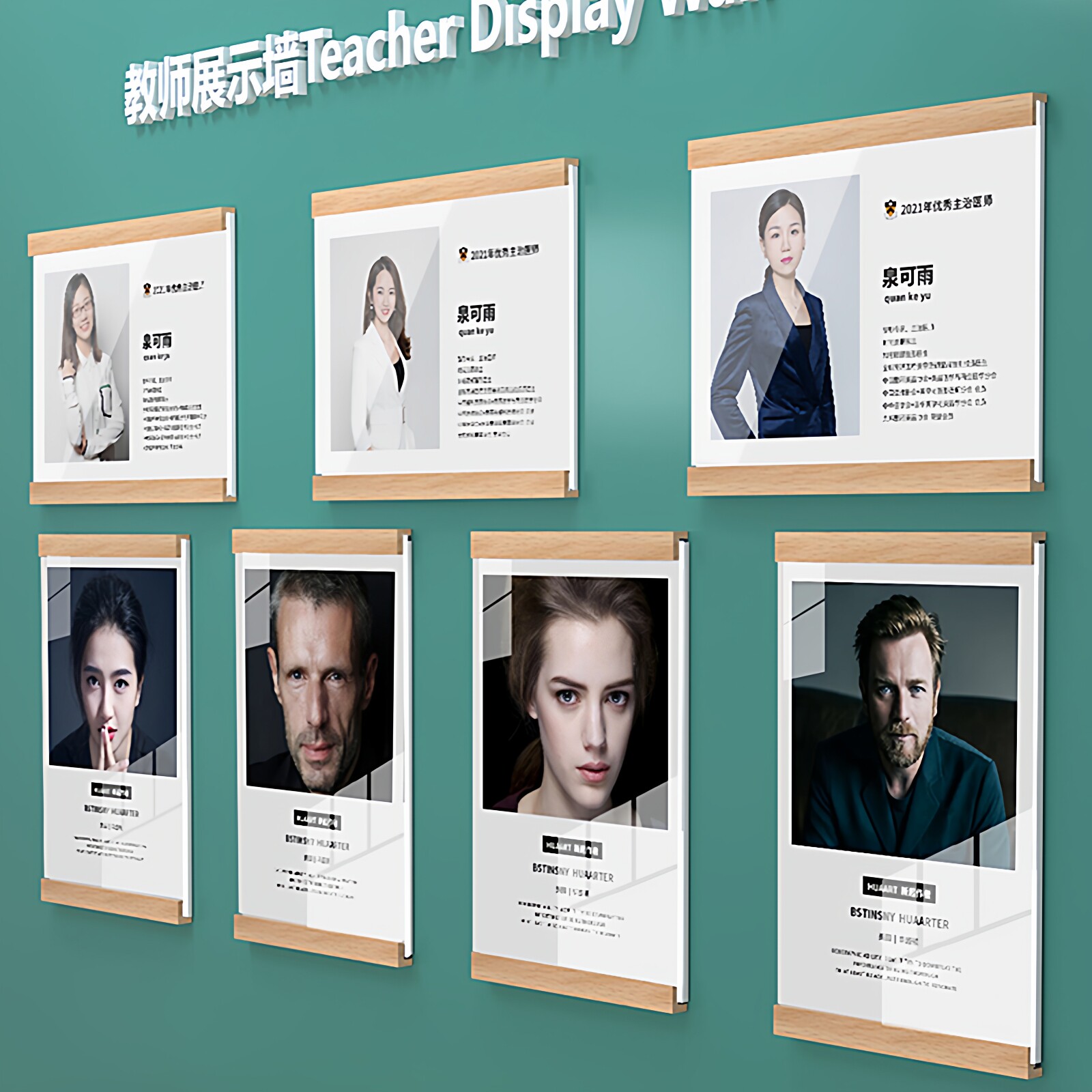 教师简介展示墙亚克力相框师资墙专利证书挂墙免打孔瑜伽舞蹈老师展示框A4健身教练广告展示框荣誉证书保护套