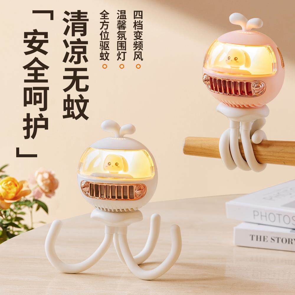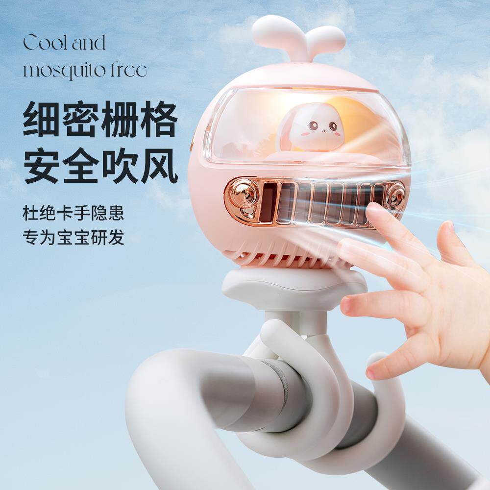 可驱蚊婴儿车小风扇无叶静音八爪鱼宝宝推车充电便携夹式户外床上
