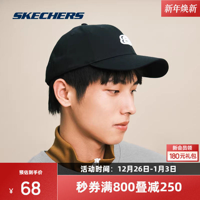 斯凯奇男女同款防晒帽遮阳帽运动刺绣鸭舌帽休闲情侣棒球帽