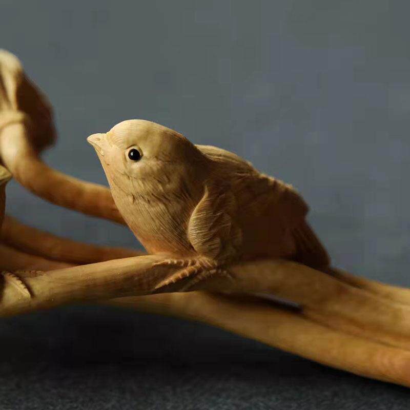 黄杨木雕手把件中式客厅玄关摆件实木工艺品收藏创意喜事连连如意