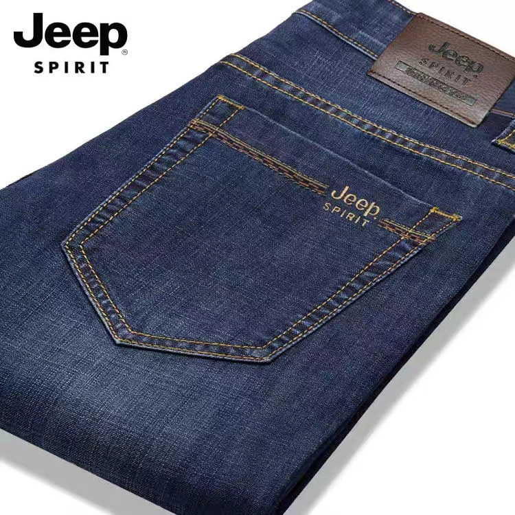 jeep秋冬牛仔裤男直筒宽松弹力商务中年加绒吉普新款长裤休闲大码