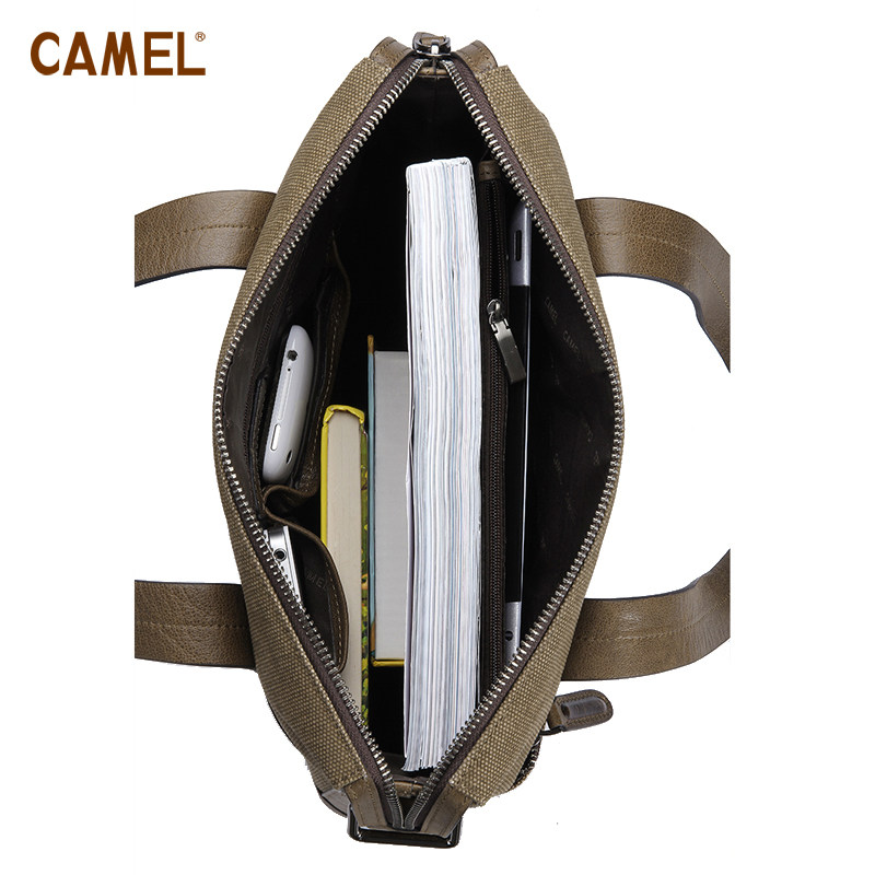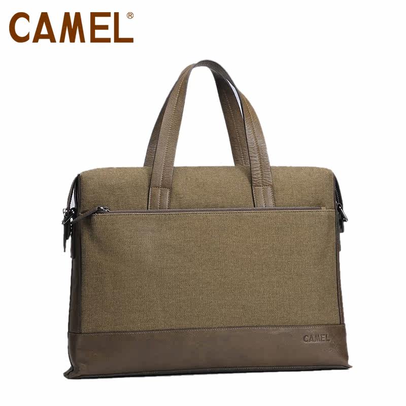 【非卖品】camel骆驼 帆布包 牛皮 休闲包包 男包 拼接 手提公文