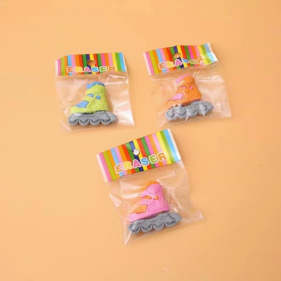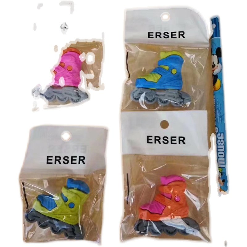 创意卡通轮滑溜冰鞋橡皮擦儿童轮E滑培训礼物学习学生文具用品