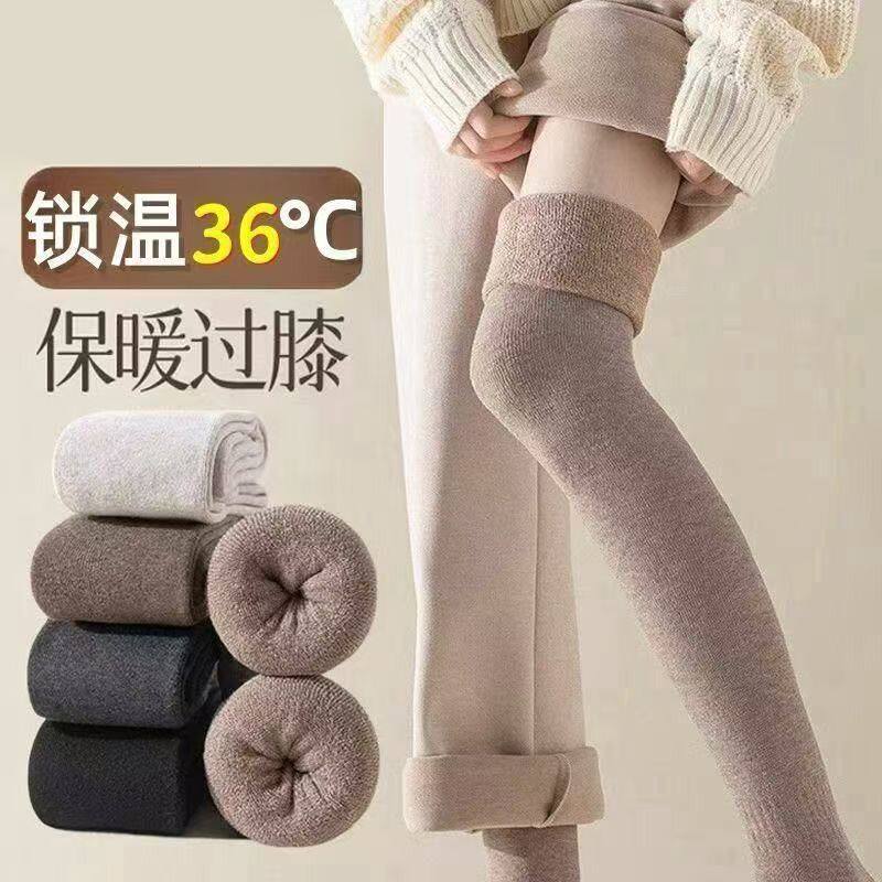过膝袜子女秋冬羊毛长筒袜加厚保暖护膝大腿袜纯棉压力显瘦高筒袜