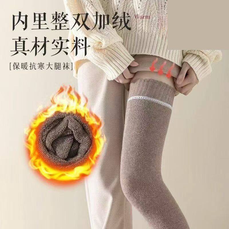 过膝袜女长筒秋冬季纯棉保暖加绒加厚防滑护膝腿套大腿长腿高筒袜