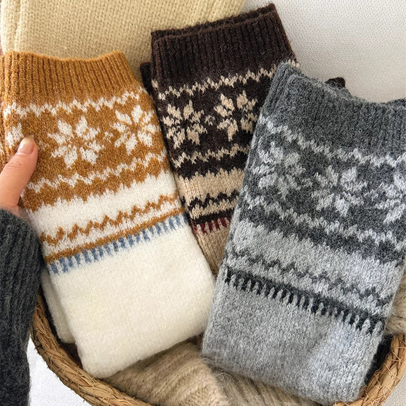 耐尔绵羊毛袜子女秋冬长袜加厚保暖复古百搭中筒袜ins潮堆堆袜