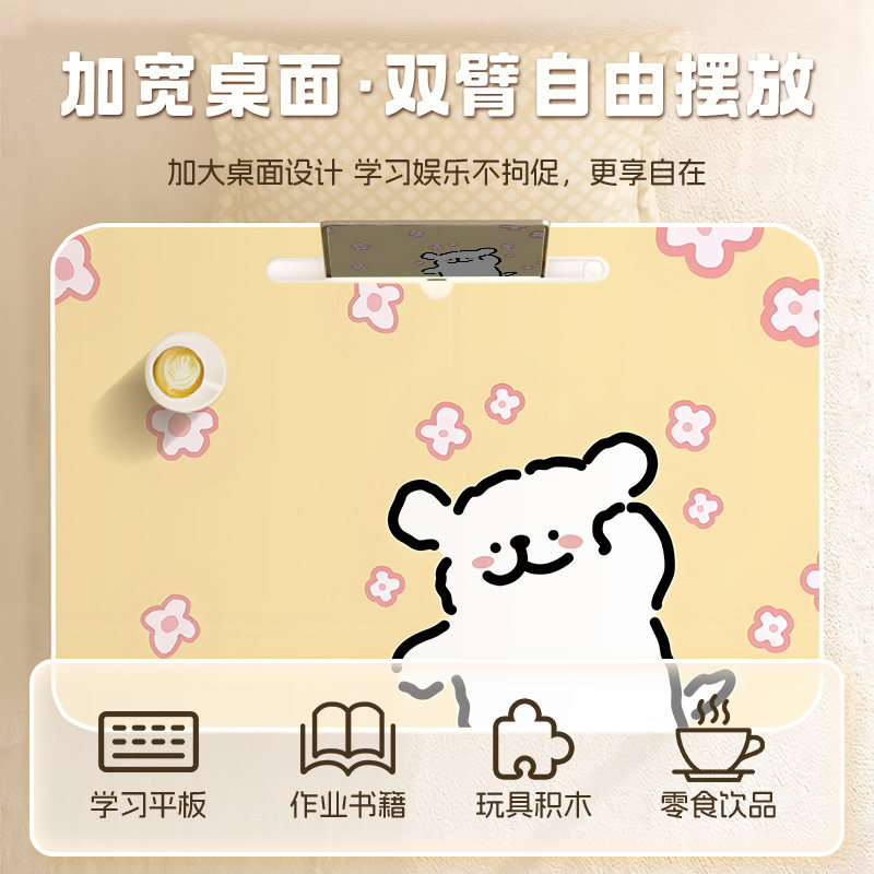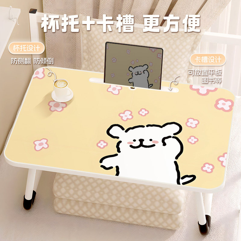 线条小狗床上小桌子可折叠卡通小桌板笔记本电脑懒人支架办公书桌卧室飘窗儿童阅读膝上小桌宿舍学生学习写字
