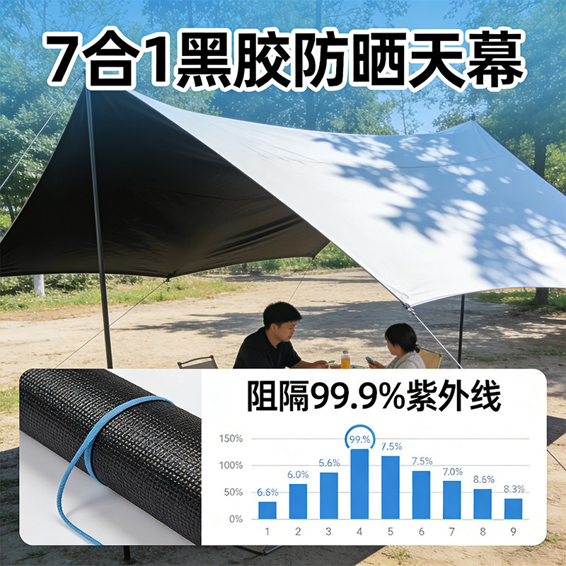 户外黑胶天幕帐篷露营装备野营野餐便携大号加厚防风雨防晒遮阳棚
