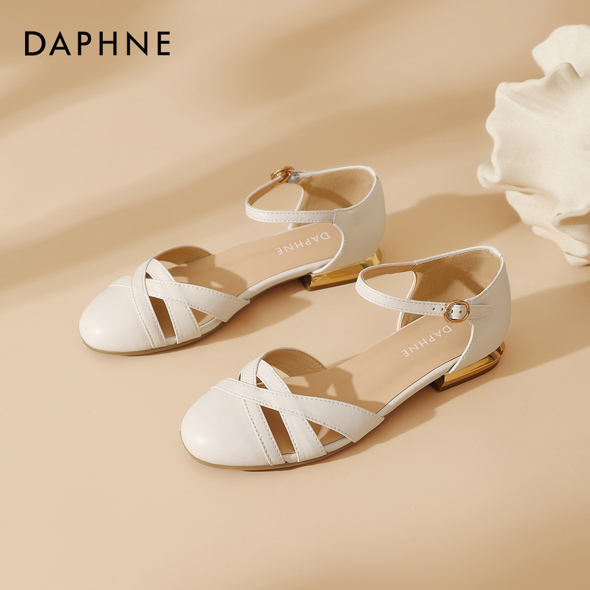 达芙妮包头凉鞋女夏季2026新款外穿平底法式编织妈妈粗跟罗马女鞋