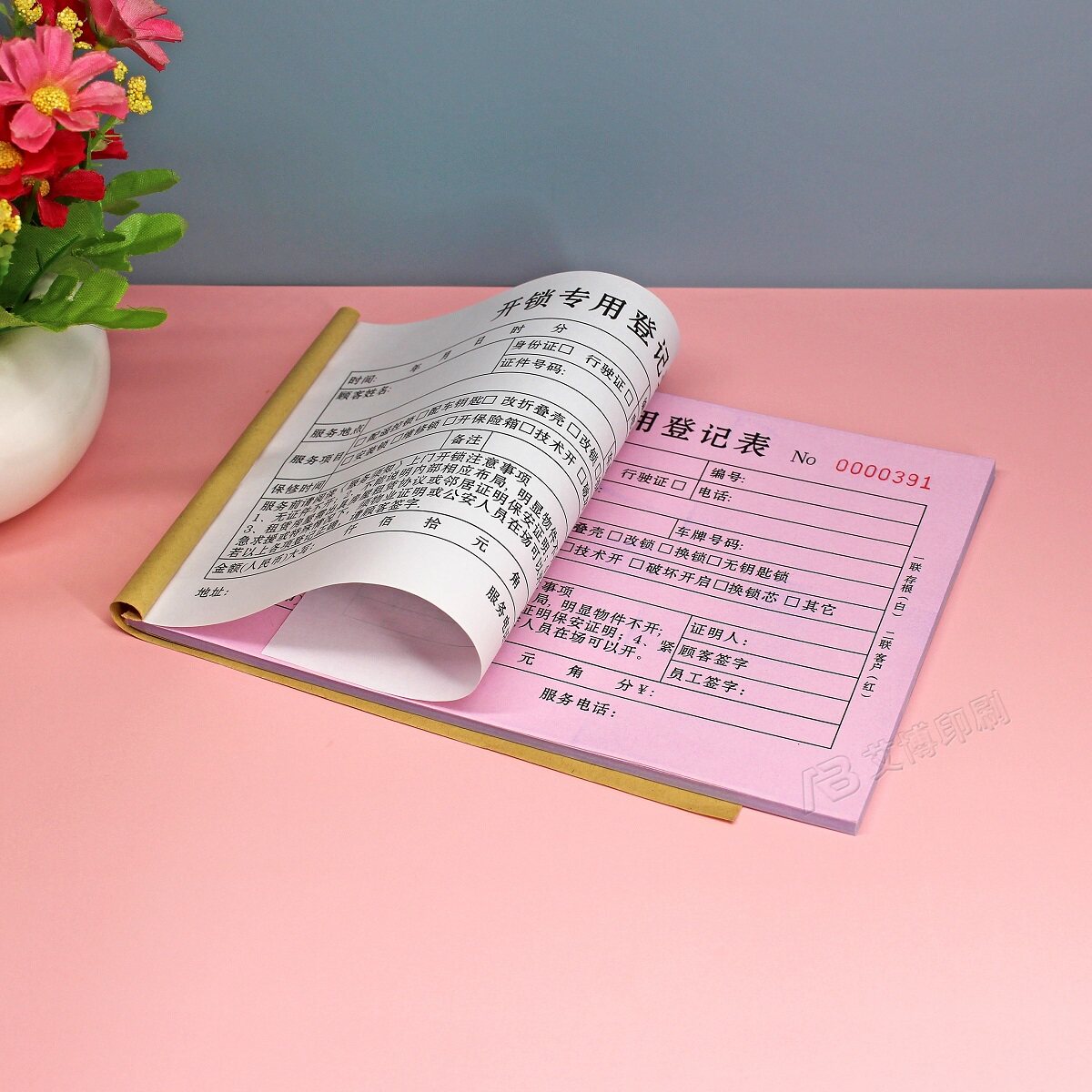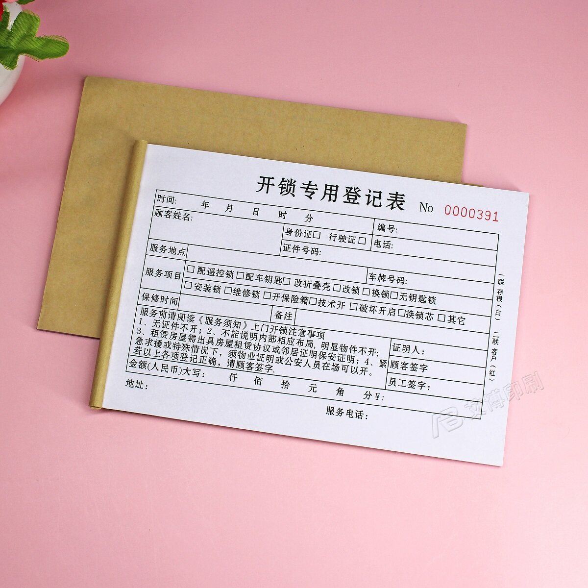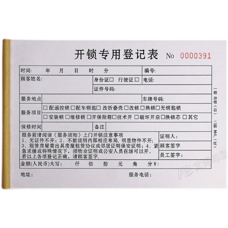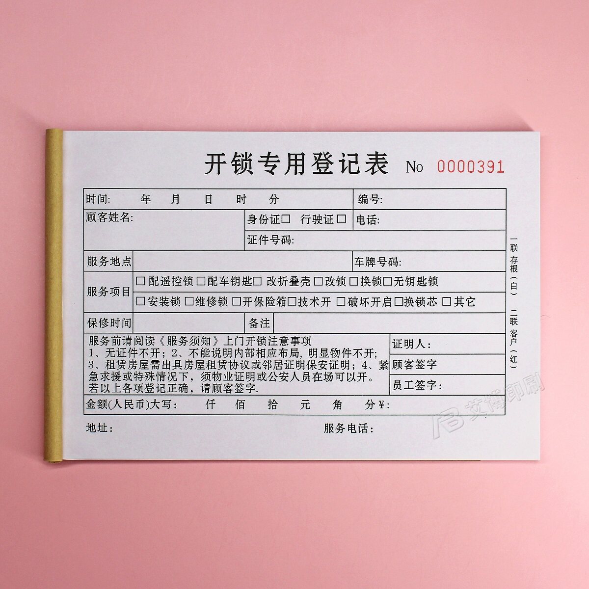 修锁匠车门房门开锁专用登记表三联换锁芯换锁上门服务单收费收据