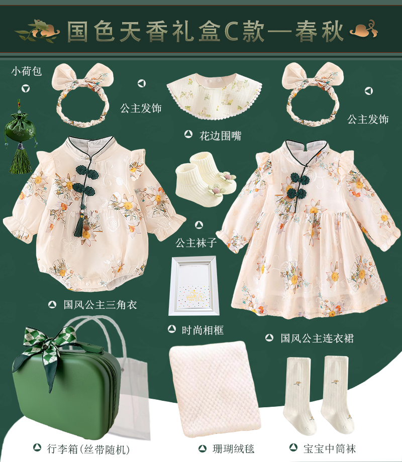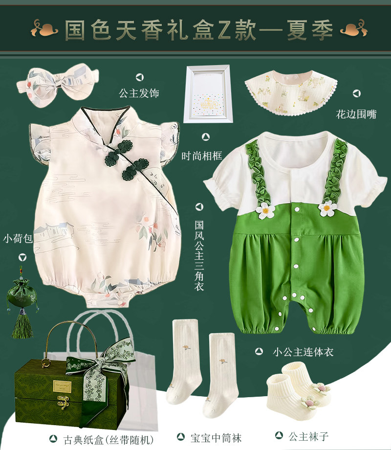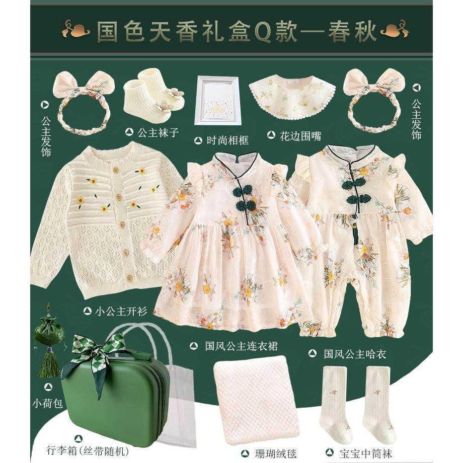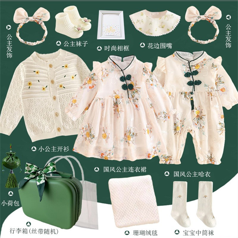 婴儿礼盒中式国风女孩子宝宝旗袍裙子百天周岁四季款新生儿礼物