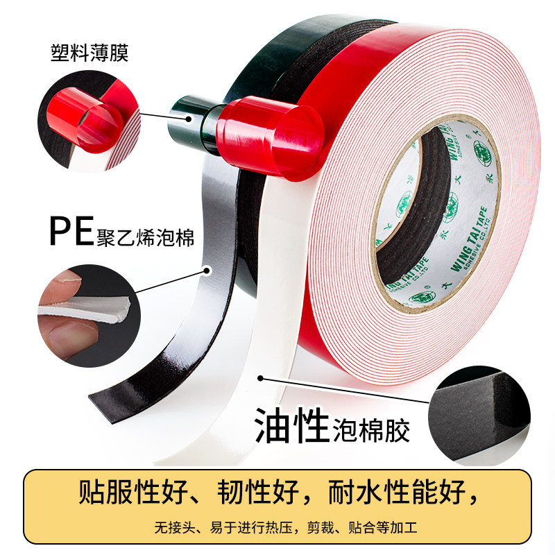 永大PE无痕泡棉双面胶海绵泡沫易妥贴强力高粘度不留痕广告固定防水两面塑料粘贴画框可转移胶条汽车装饰胶带