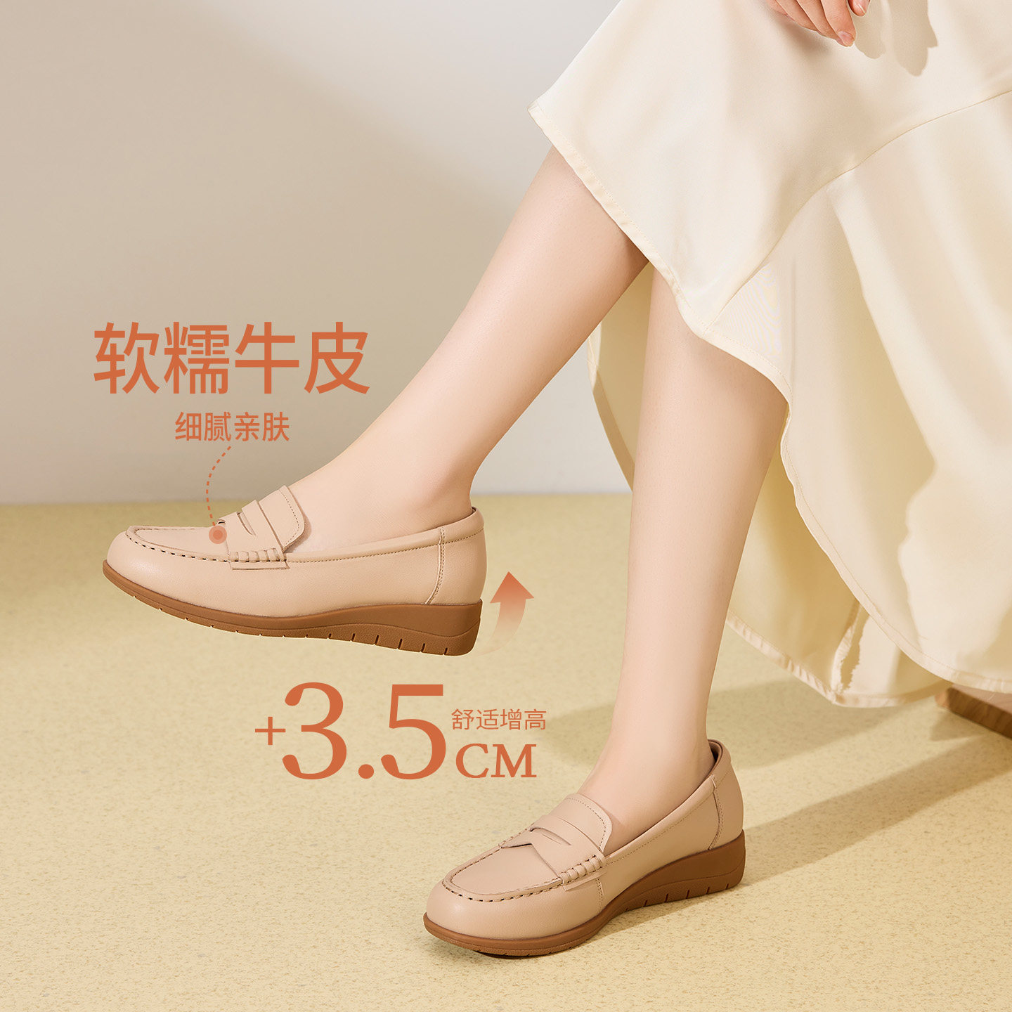 奥康 女鞋2026春季新款真皮坡跟一脚蹬护士鞋简约软底女士豆豆鞋