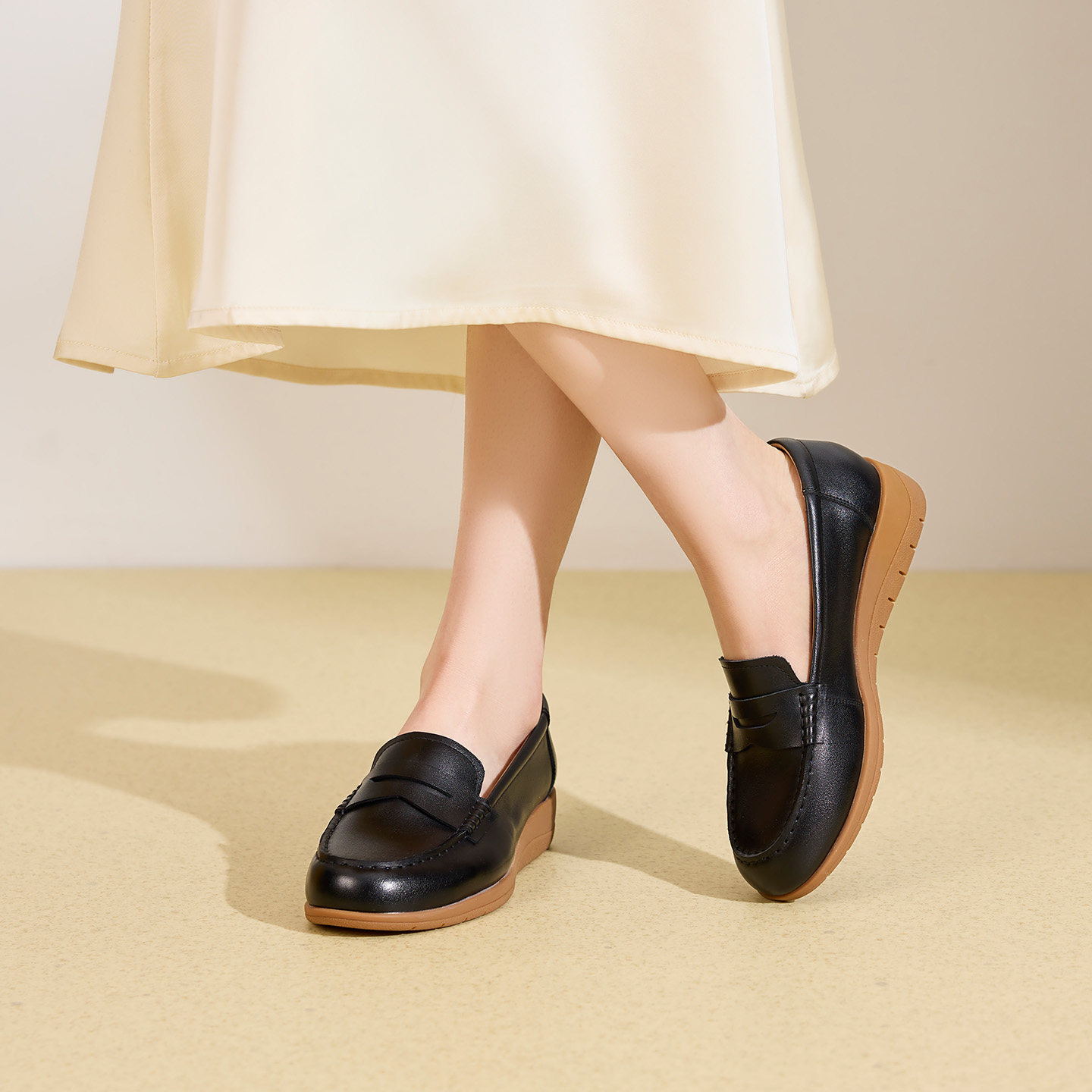 日泰头层牛皮女单鞋秋季厚底小皮鞋百搭通勤鞋妈妈软底真皮乐福鞋