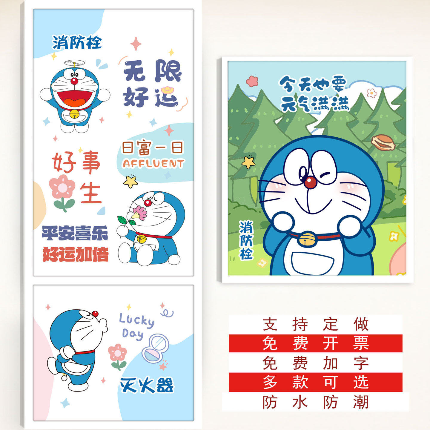 机器猫消防栓贴纸柜门装饰遮挡美化消火栓高级感遮丑电水井门卡通