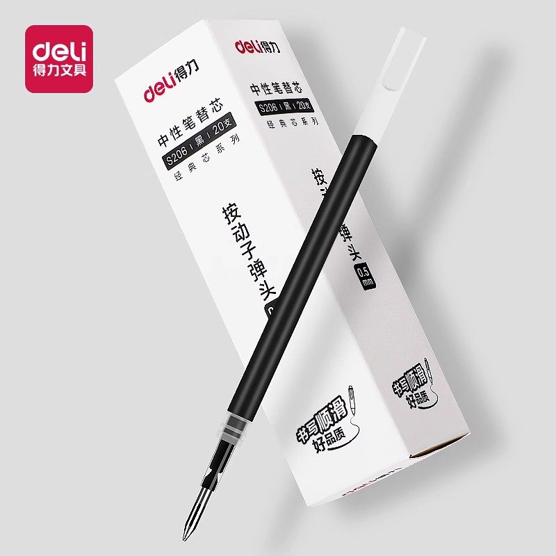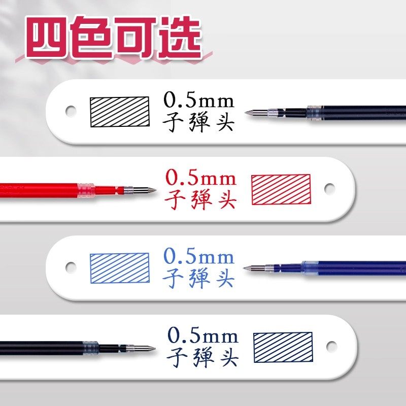 得力按动笔芯0.5子弹头学生中性笔替芯蓝红墨蓝大容量按压水笔芯