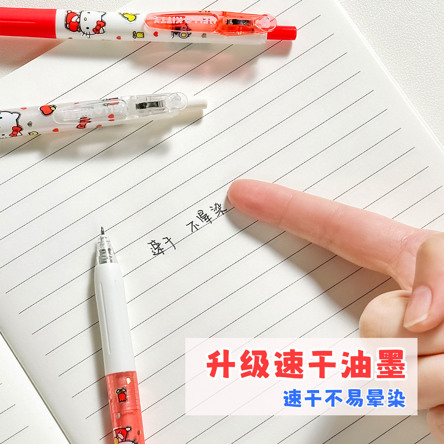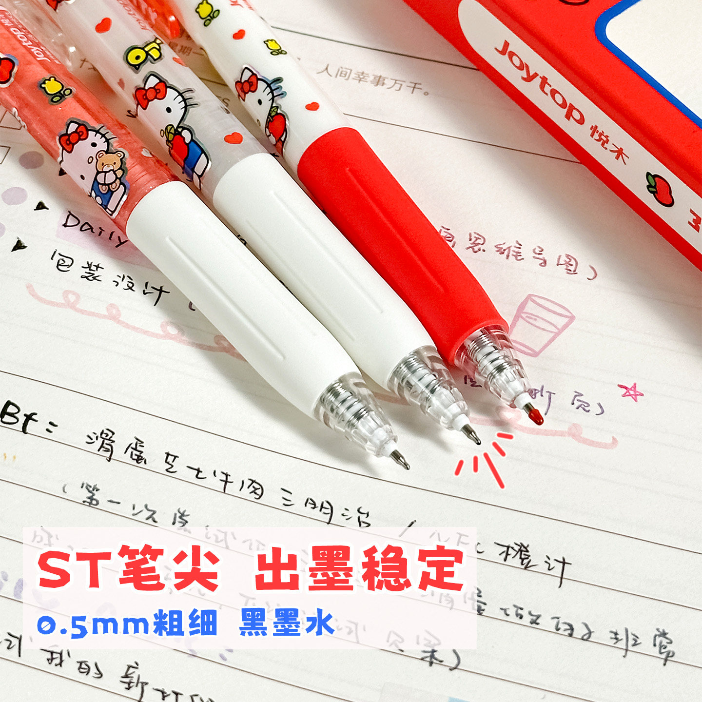 HelloKitty按动中性笔高颜值ins风顺滑速干黑色签字笔学生专用