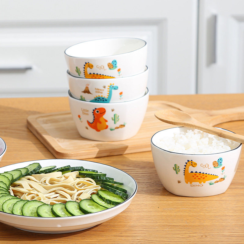 釉下彩创意卡通饭碗家用陶瓷食品碗儿童沙拉水果碗米饭汤碗可微波