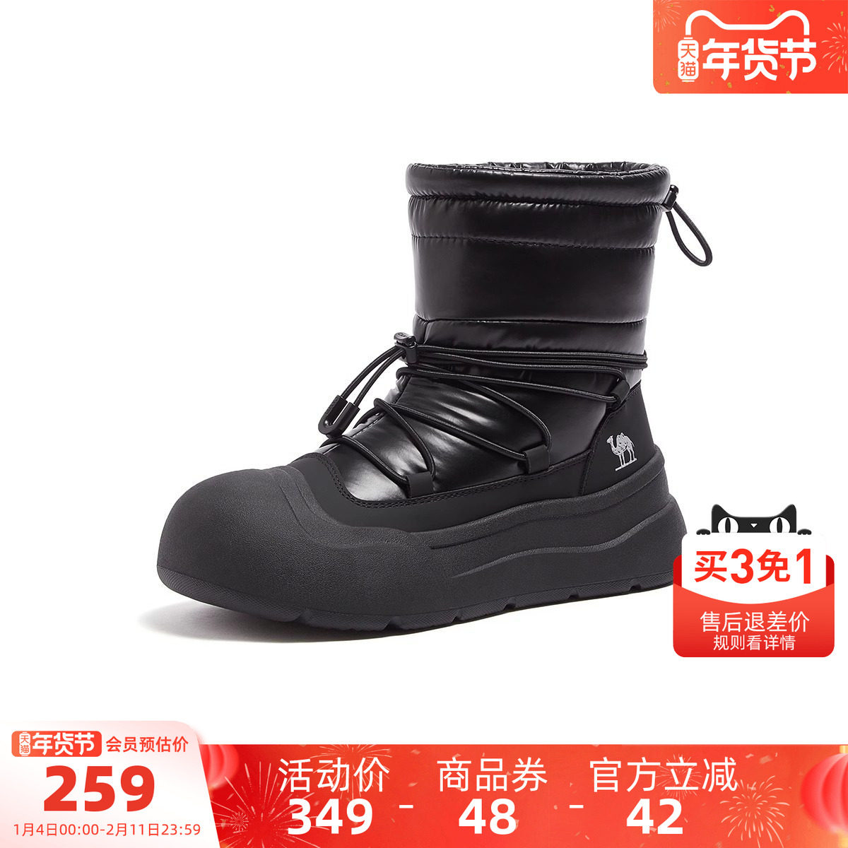 骆驼女鞋2025冬季新款户外雪地靴女款厚底加绒保暖棉鞋中筒短靴子